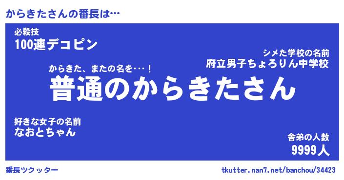 | 男性向けラノベタイトル風あだ名 | 『からきたの憂鬱』 |