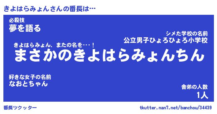 | 男性向けラノベタイトル風あだ名 | 『きよはらみょんの憂鬱』 |