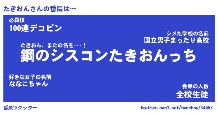 | 意味不明あだ名 | 『ペロリンたきおん』『永久保存たきおん』 |