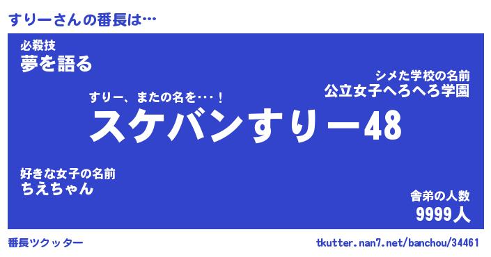 | 肩書あだ名 | 『すりー店長』『すりー大統領』 |