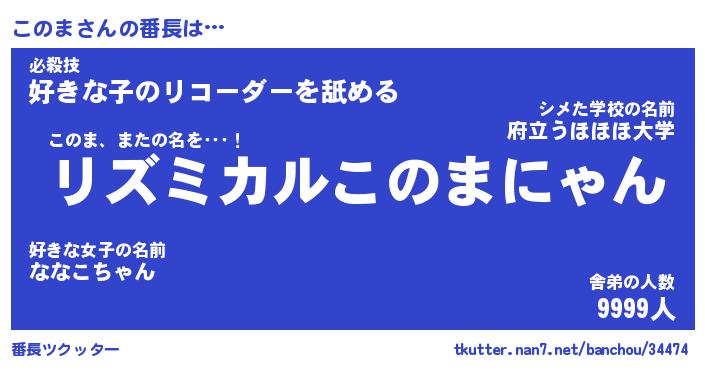 | ヒーロー風カッコイイあだ名 | 『スーパーコノマ』『ウルトラこのまマン』 |