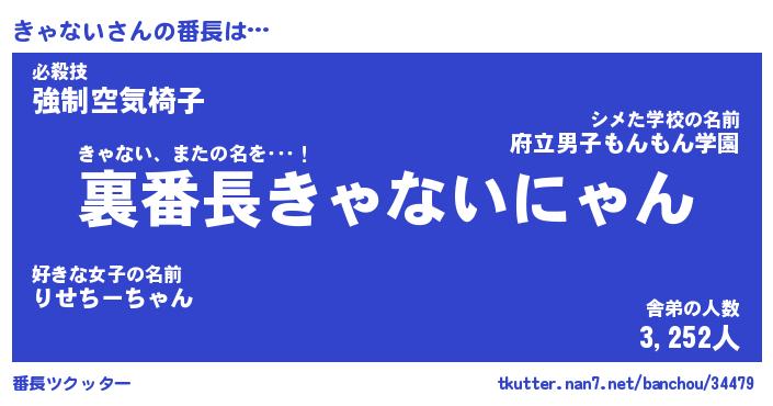 | 意味不明あだ名 | 『ペロリンきゃない』『永久保存きゃない』 |