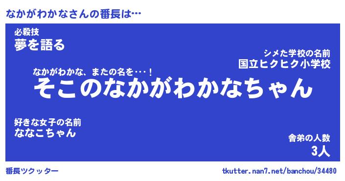| ヒーロー風カッコイイあだ名 | 『スーパーナカガワカナ』『魔戒騎士ナカ』 |