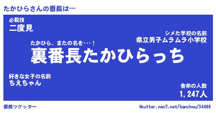 | 意味不明あだ名 | 『ペロリンたかひら』『永久保存たかひら』 |