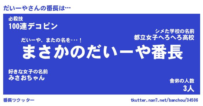 | 意味不明あだ名 | 『ペロリンだいーや』『永久保存だいーや』 |