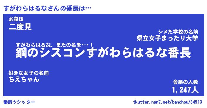 | ヒーロー風カッコイイあだ名 | 『スーパースガワラハルナ』 |