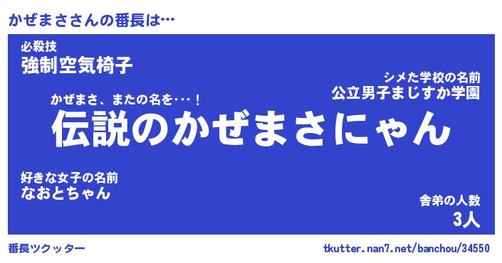 | 意味不明あだ名 | 『ペロリンかぜまさ』『永久保存かぜまさ』 |