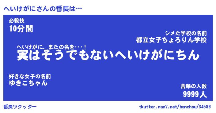 | 肩書あだ名 | 『へいけがに社長』『へいけがに総理大臣』 |