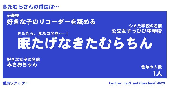 | 肩書あだ名 | 『きたむら御曹司』『きたむら総理大臣』 |