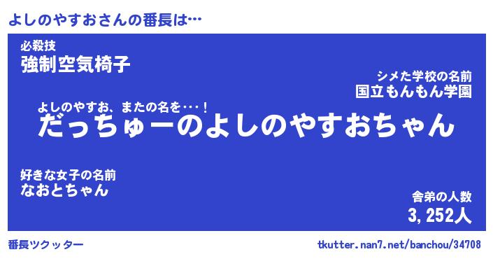| ヒーロー風カッコイイあだ名 | 『スーパーヨシノヤスオ』『天弓騎士ヨシ』 |