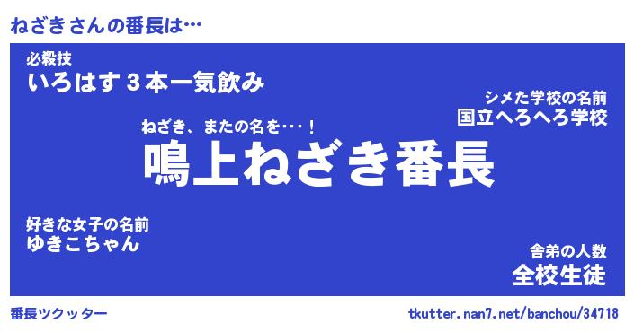 | ヘコむあだ名 | 『ねざにー』『なまこ酢』『ねざっぺ』 |