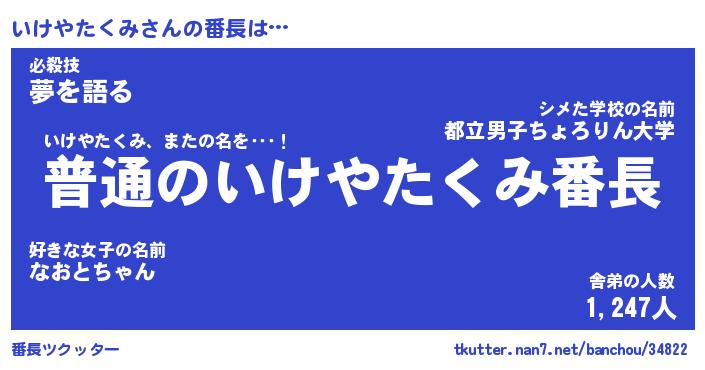 | ピコ太郎風あだ名 | 『イコ四郎』『ピイ六郎』『イケ三郎』 |