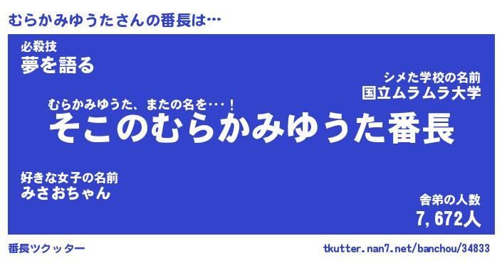 | ヒーロー風カッコイイあだ名 | 『スーパームラカミユウタ』 |