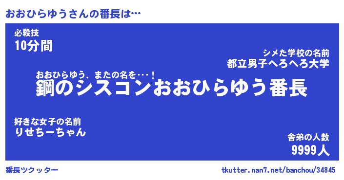 | ヒーロー風カッコイイあだ名 | 『スーパーオオヒラユウ』『天弓騎士オオ』 |