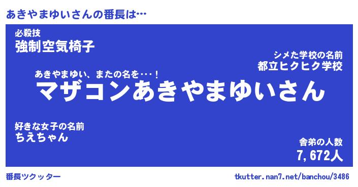 | ヘコむあだ名 | 『あきにゅー』『つくし』『あきお』 |