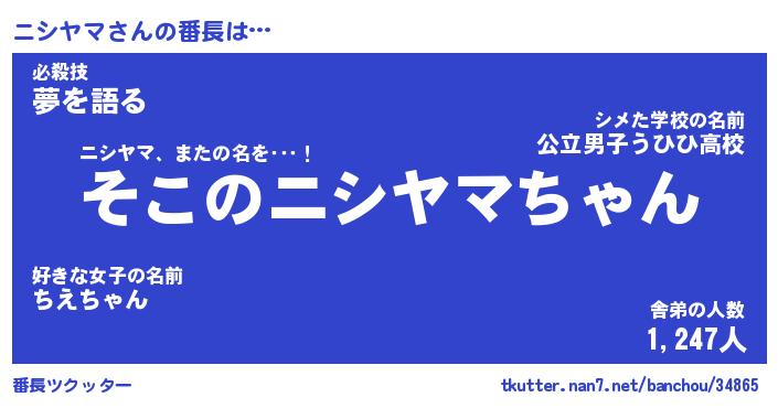| ポケモン風あだ名 | 『ニシチュウ』『ニシヤダネ』 |