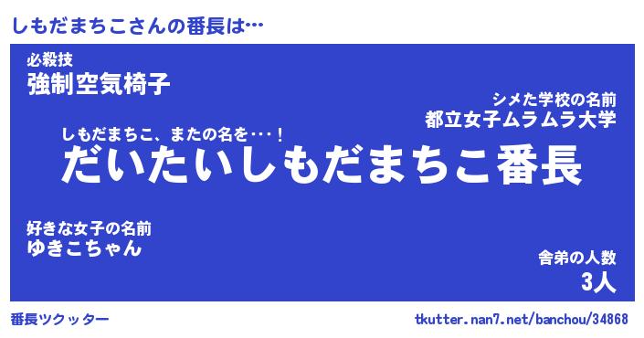 | ポケモン風あだ名 | 『シモチュウ』『シモダダネ』 |