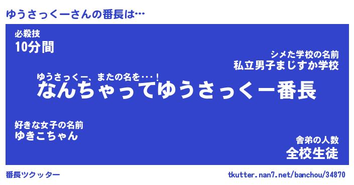 | 伝説のあだ名 | 『伝説のスナイパーゆうさっくー』 |