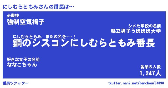 | 肩書あだ名 | 『にしむらともみ店長』 |