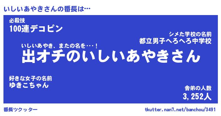 | 2回繰り返すあだ名 | 『いしいし』『いいしし』『いそいそ』 |