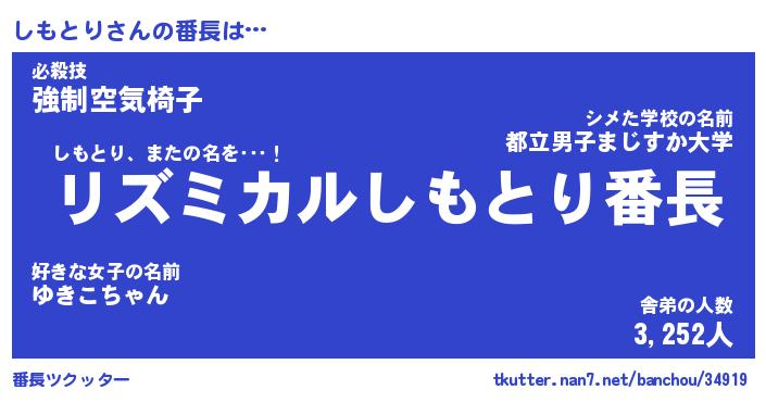 | 男性向けラノベタイトル風あだ名 | 『しもとりの憂鬱』 |