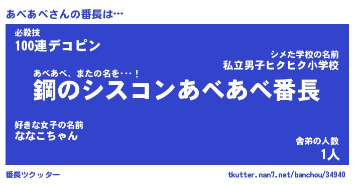 | 意味不明あだ名 | 『ペロリンあべあべ』『永久保存あべあべ』 |