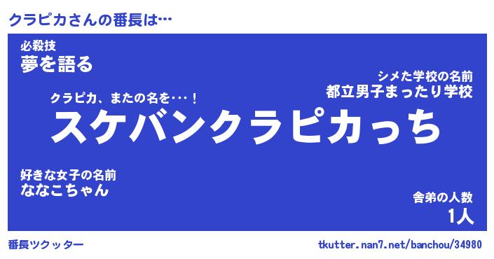 | ヒーロー風カッコイイあだ名 | 『スーパークラピカ』『魔戒騎士クラ』 |