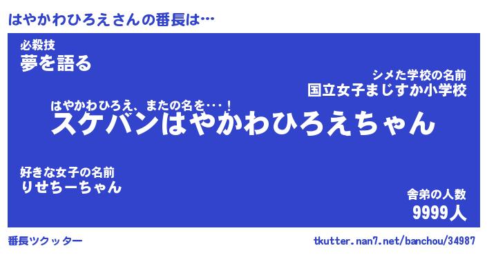 | ピコ太郎風あだ名 | 『ハコ三郎』『ピハ八郎』『ハヤ六郎』 |