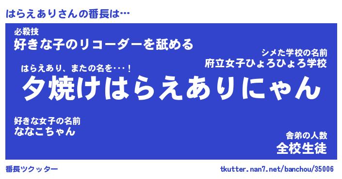 | ヘコむあだ名 | 『はらにー』『なまこ酢』『はらっぺ』 |