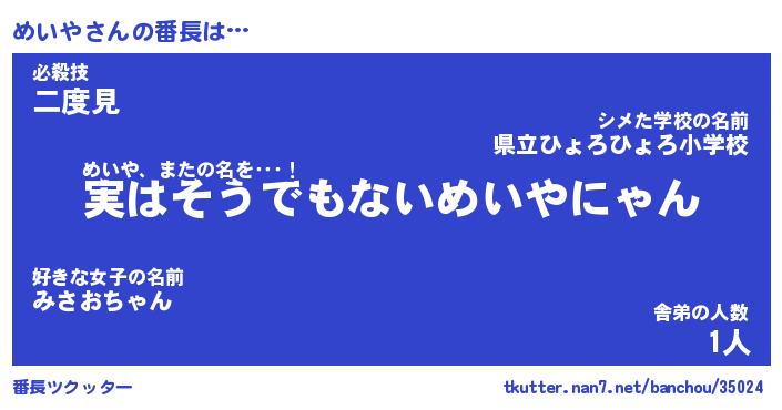 | 肩書あだ名 | 『めいや店長』『めいや国家主席』 |