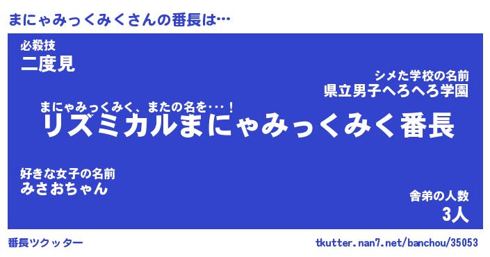 | 欧米人風あだ名 | 『マイケルまにゃみっくみく』 |