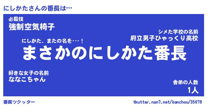 | ポケモン風あだ名 | 『ニシチュウ』『ニシカダネ』 |