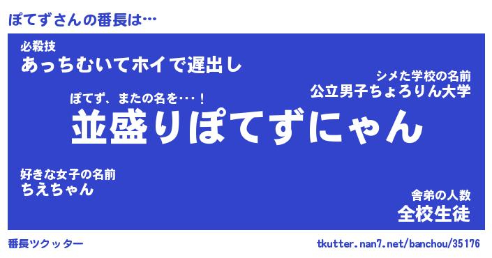 | 男性向けラノベタイトル風あだ名 | 『ぽてずの憂鬱』 |