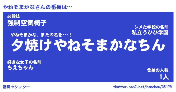 | 2回繰り返すあだ名 | 『やねやね』『ややねね』『あんあん』 |