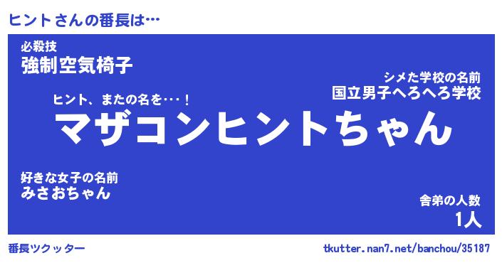 | 意味不明あだ名 | 『ペロリンヒント』『ヒントフォーエバー』 |