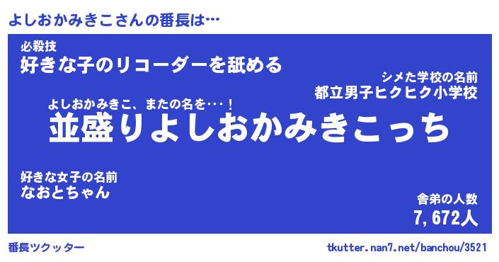 | 肩書あだ名 | 『よしおかみきこ御曹司』 |