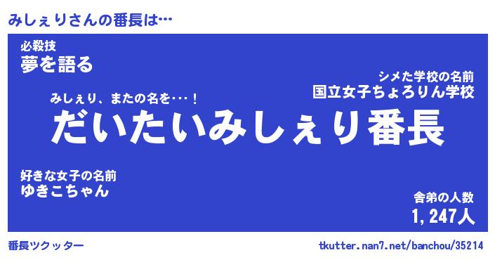 | ヘコむあだ名 | 『みしにー』『豆乳』『みしお』 |