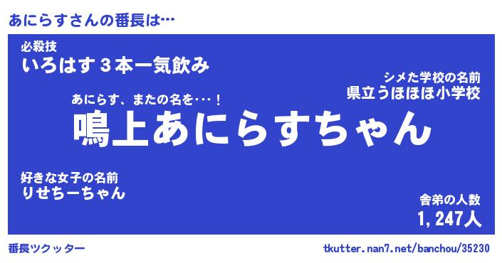 | 意味不明あだ名 | 『ペロリンあにらす』『永久保存あにらす』 |