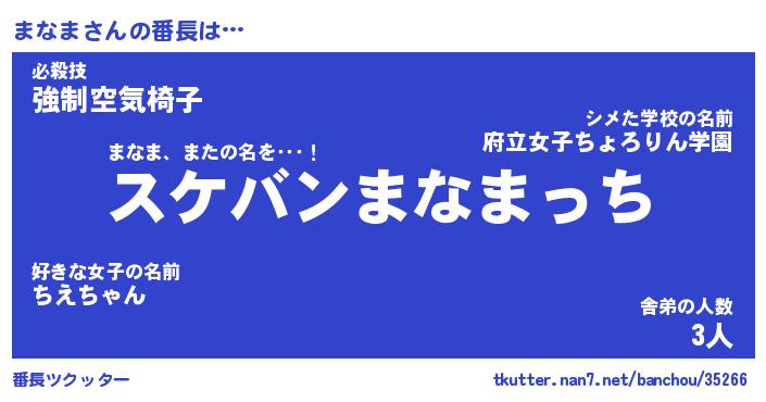 | 肩書あだ名 | 『まなま店長』『まなま国家主席』 |