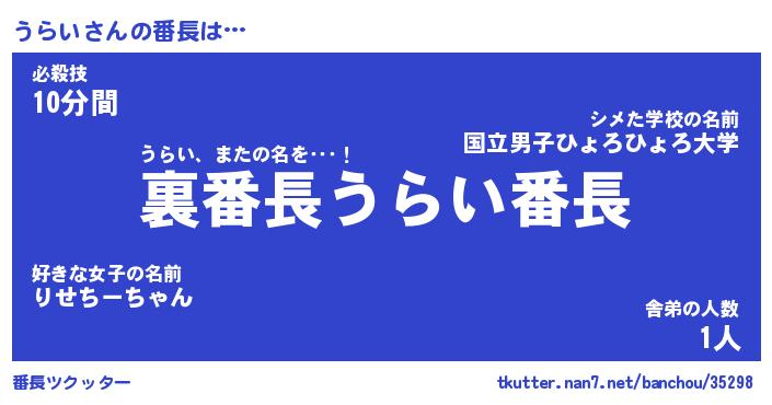 | ヒーロー風カッコイイあだ名 | 『スーパーウライ』『ウルトラうらいマン』 |