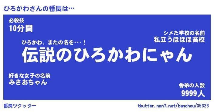 | 肩書あだ名 | 『ひろかわ社長』『ひろかわ総理大臣』 |