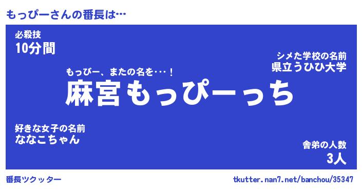 | 意味不明あだ名 | 『ペロリンもっぴー』『永久保存もっぴー』 |