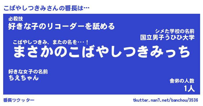 | 2回繰り返すあだ名 | 『こばこば』『ここばば』『ぬめぬめ』 |