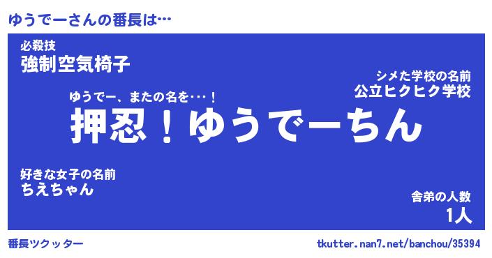 | ポケモン風あだ名 | 『ユウチュウ』『ユウデダネ』 |