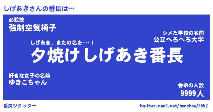 | 伝説のあだ名 | 『封印されしスナイパーしげあき』 |