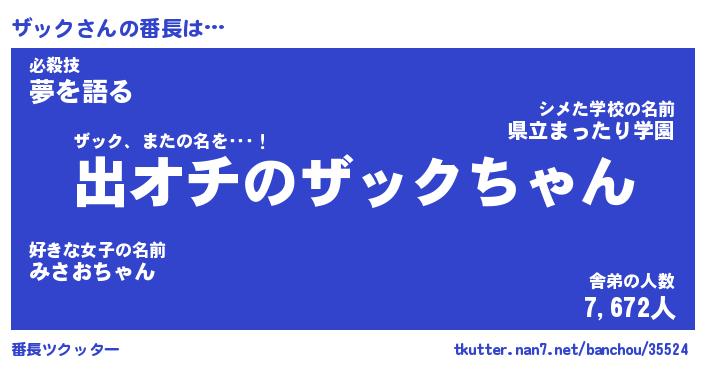 | ファンタジー風あだ名 | 『ザッフェル』『エターナルザックー』 |
