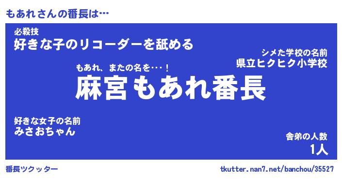 | 肩書あだ名 | 『もあれ御曹司』『もあれ国家主席』 |