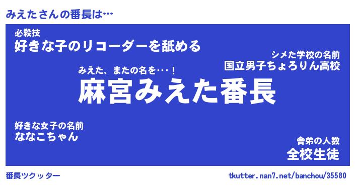 | ヘコむあだ名 | 『みえもー』『酢こんぶ』『みえお』 |