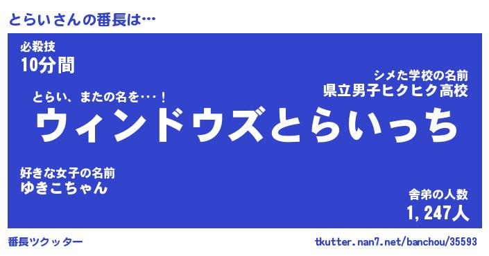| ヘコむあだ名 | 『とらにー』『つくし』『とらを』 |