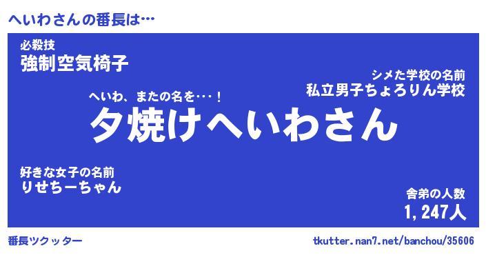 | ヒーロー風カッコイイあだ名 | 『スーパーヘイワ』『ウルトラへいわマン』 |